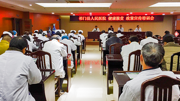 为进一步加强健康脱贫政策宣传和学习,全面落实《祁门县人民政府关于健康脱贫工程的实施意见》等健康脱贫政策,11月24日,我院在五楼会议室召开全院中层干部健康脱贫政策培训会议,常务副院长丁伯强主持会议。