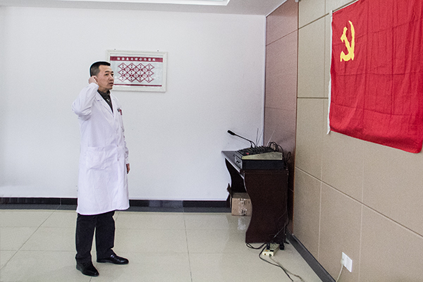 祁门县人民医院党总支“两学一做”学习教育开展以来,聚焦在行动转化、见底见效上下真功使长劲。在2月10日的党员活动日,开展党员承诺宣誓活动,党总支书记蔡健主持会议。
