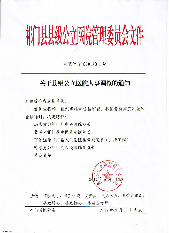 关于县级公立医院人事调整的通知